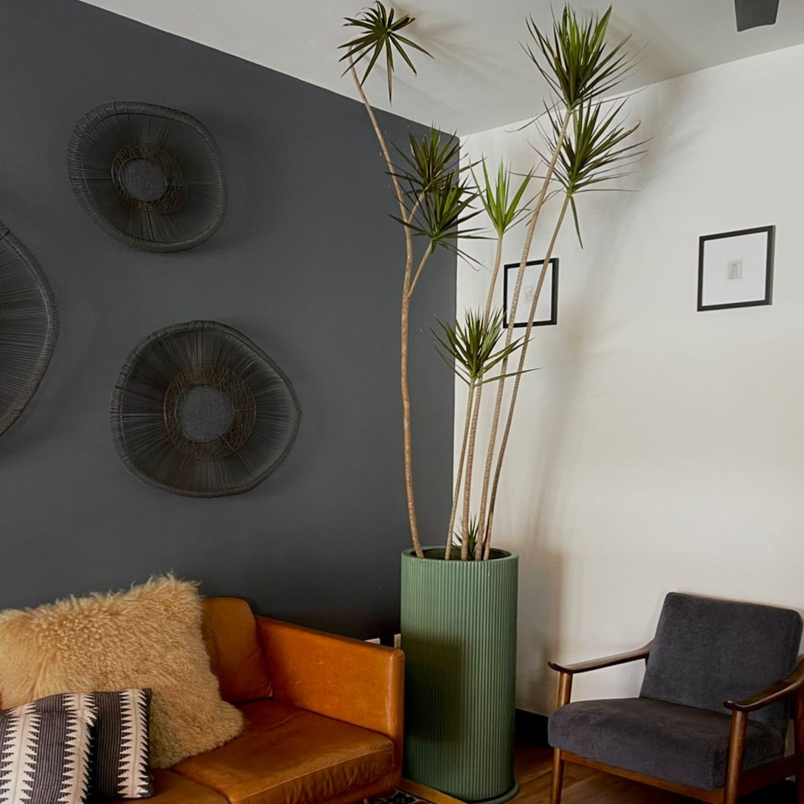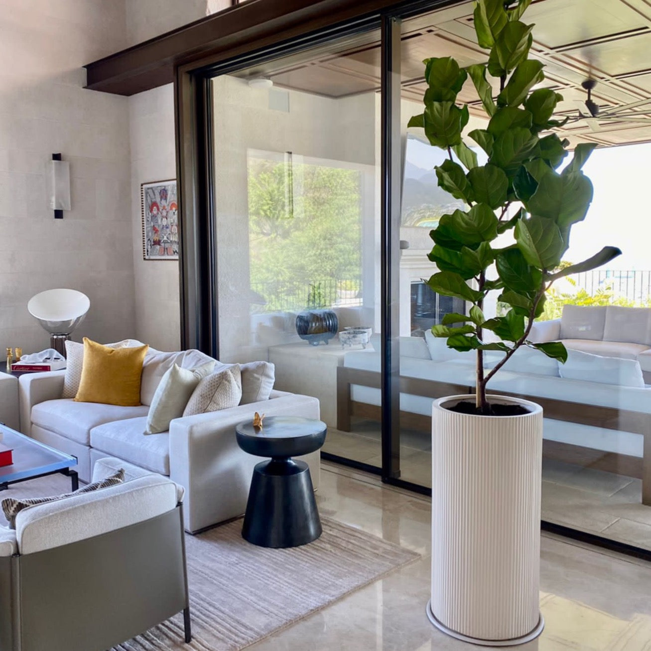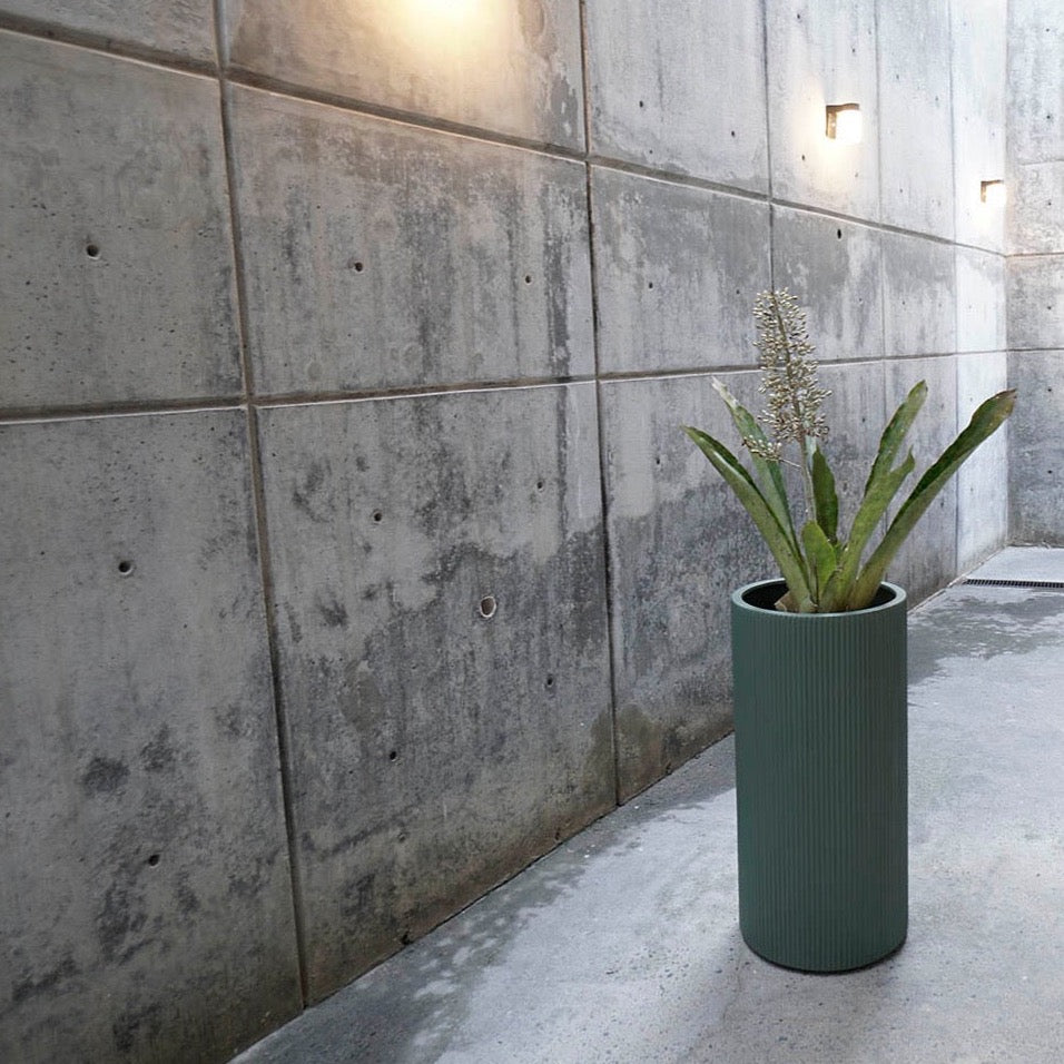 Diseñada con inspiración en las columnas de Art Decó, esta maceta de gran formato destaca por su resistencia y altura.