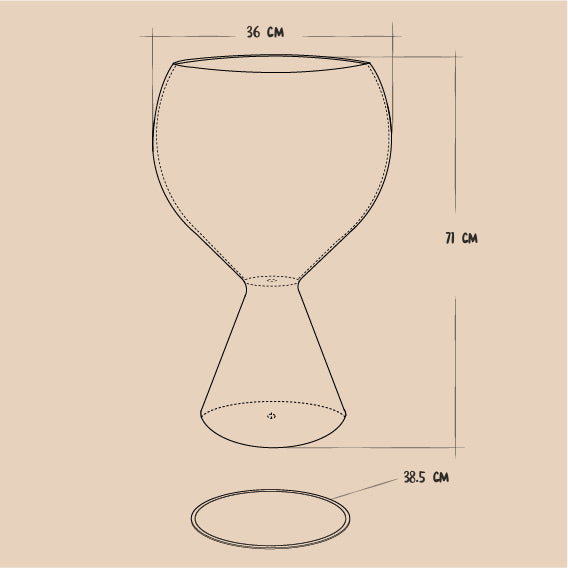 Nuestra Copa Disco destaca por su boca amplia, cuerpo esférico y base acampanada, haciendo de ella una maceta única de estilo Mid Century.