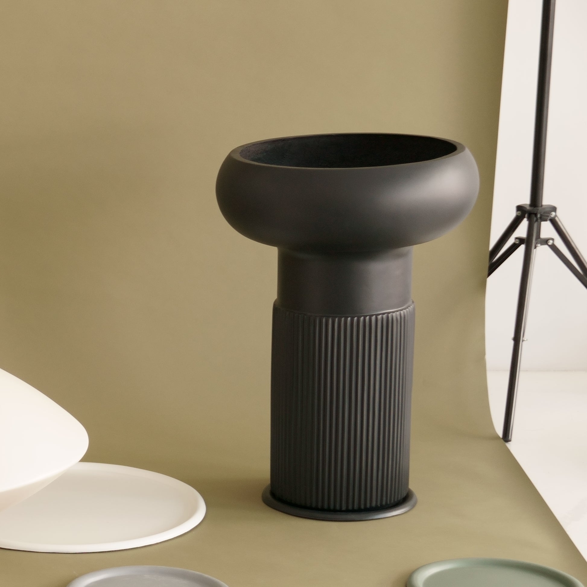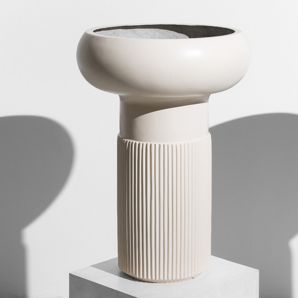 La maceta Copa Estriada, inspirada en las columnas de la arquitectura Art Decó, fusiona la elegancia de esta época en un diseño atemporal.