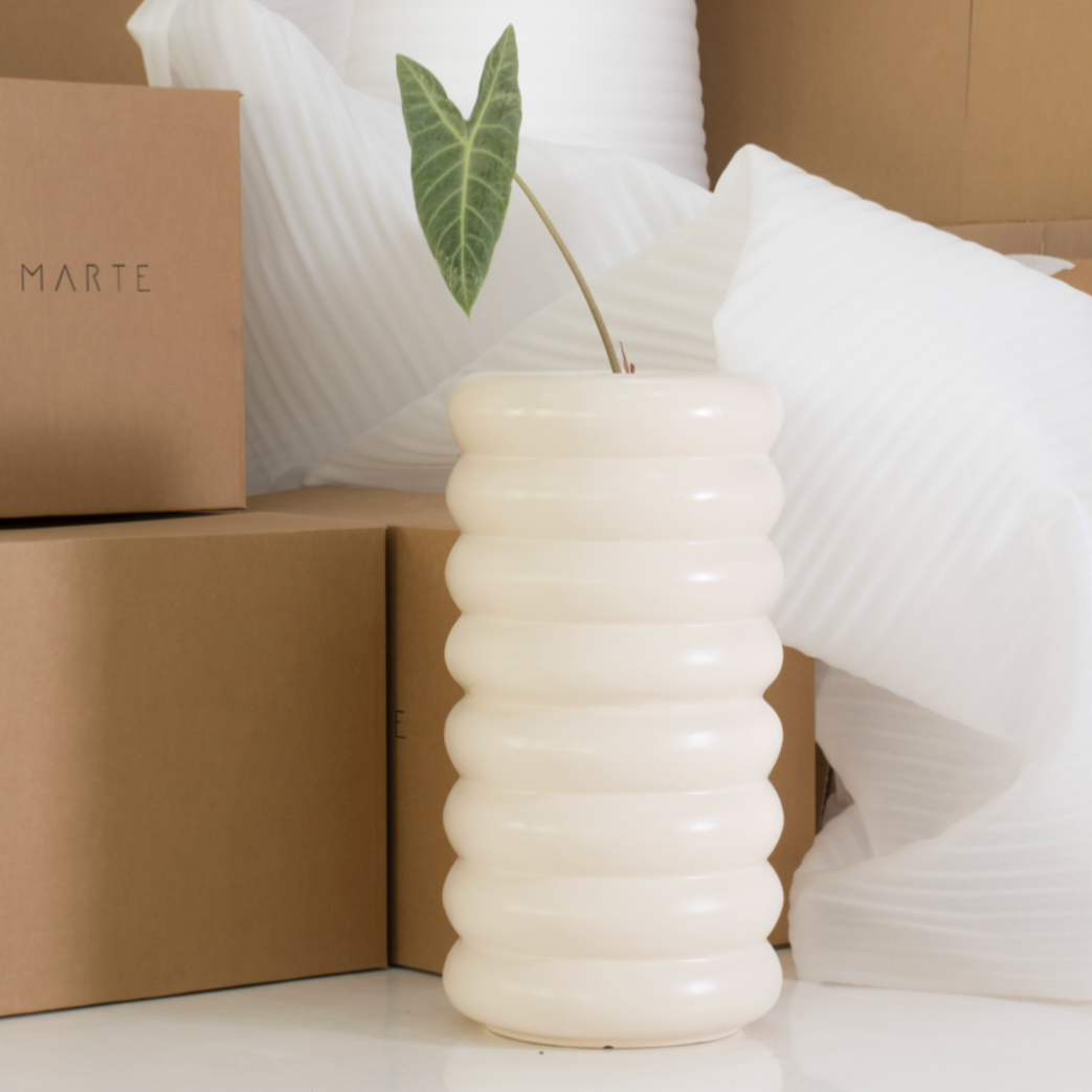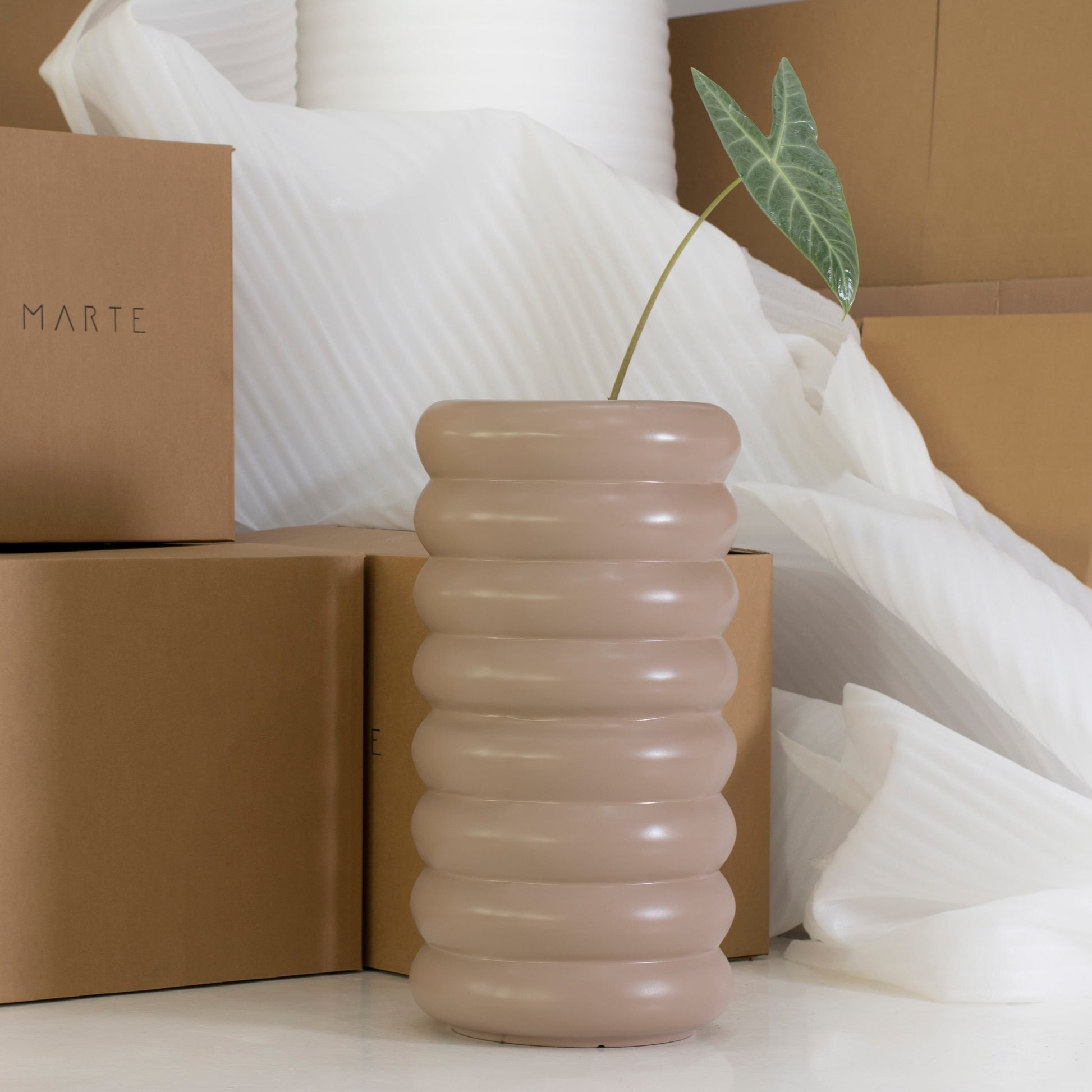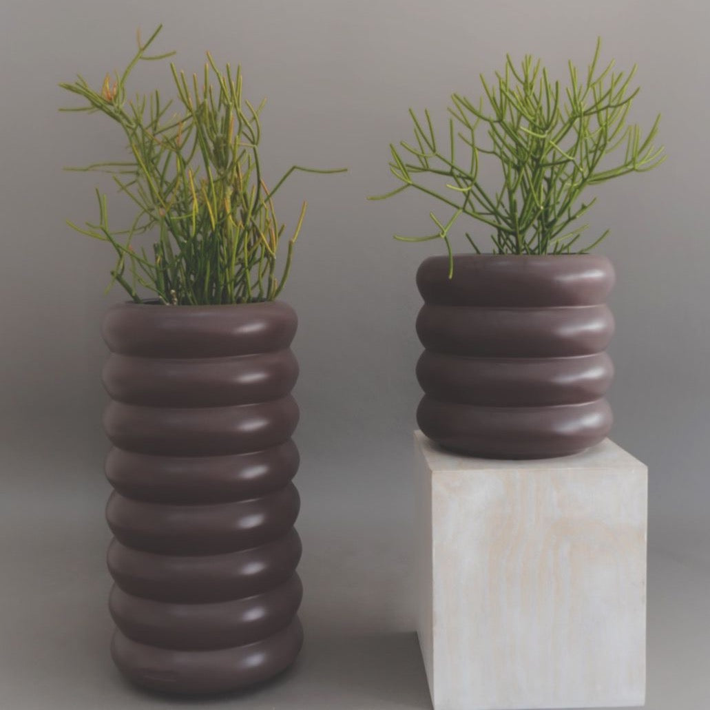 La Maceta Gusano Alto, inspirada en la estructura anillada de las orugas, ofrece un diseño único que captura la esencia fascinante de la naturaleza en su forma más elegante.
