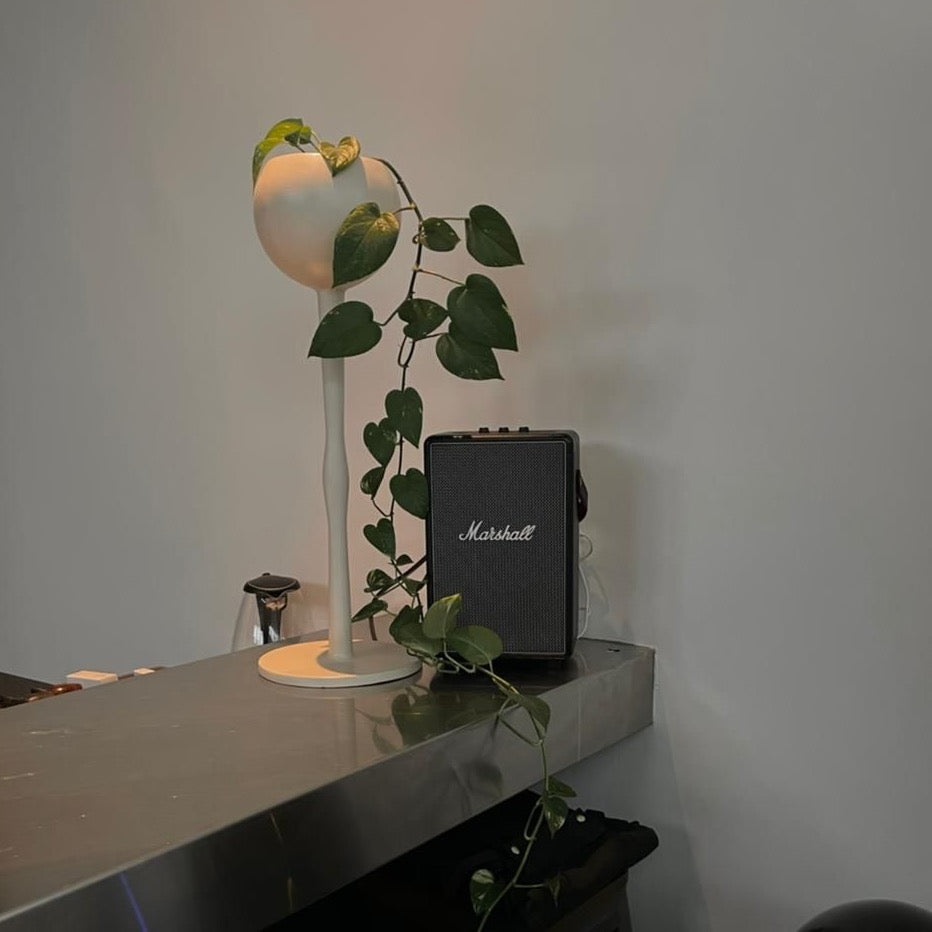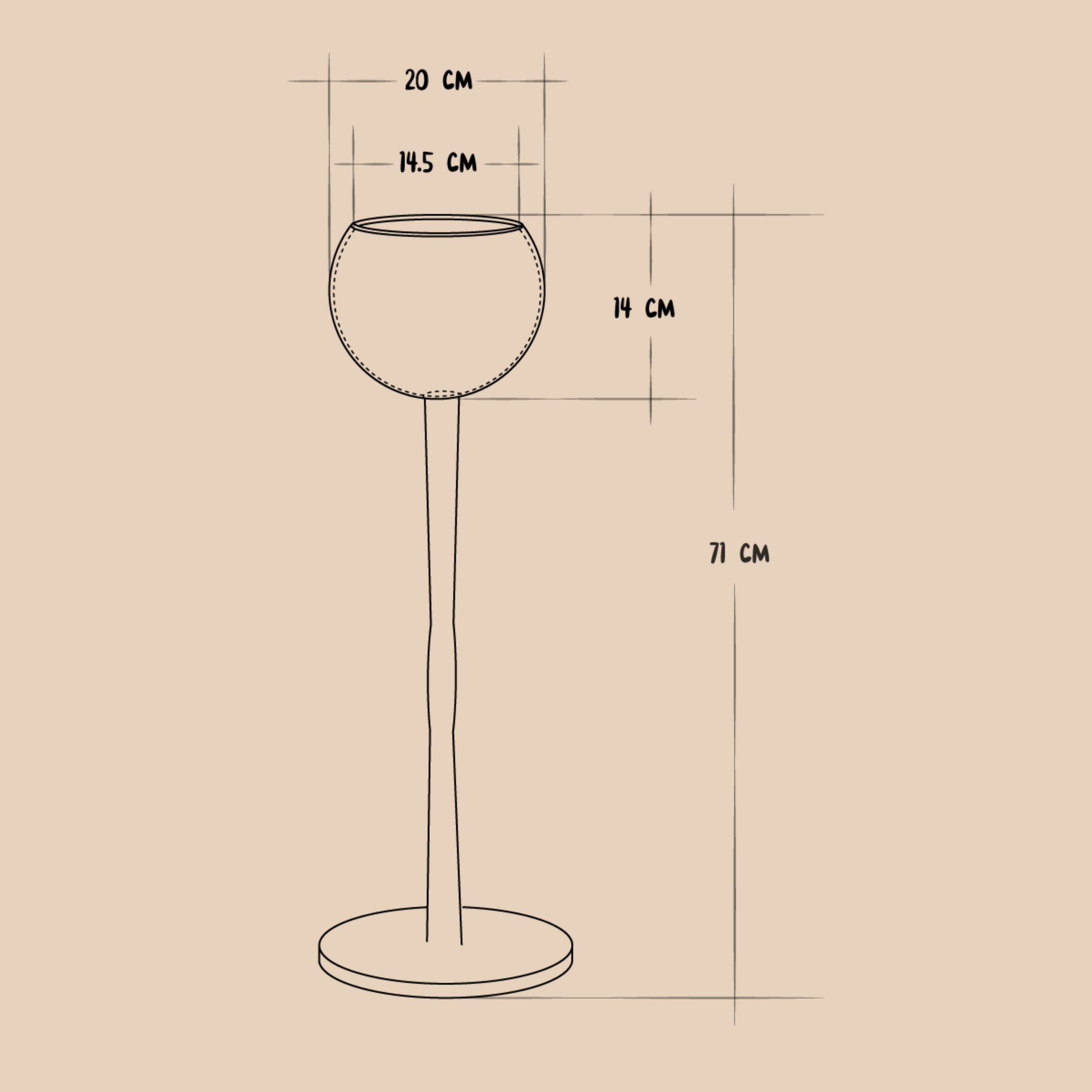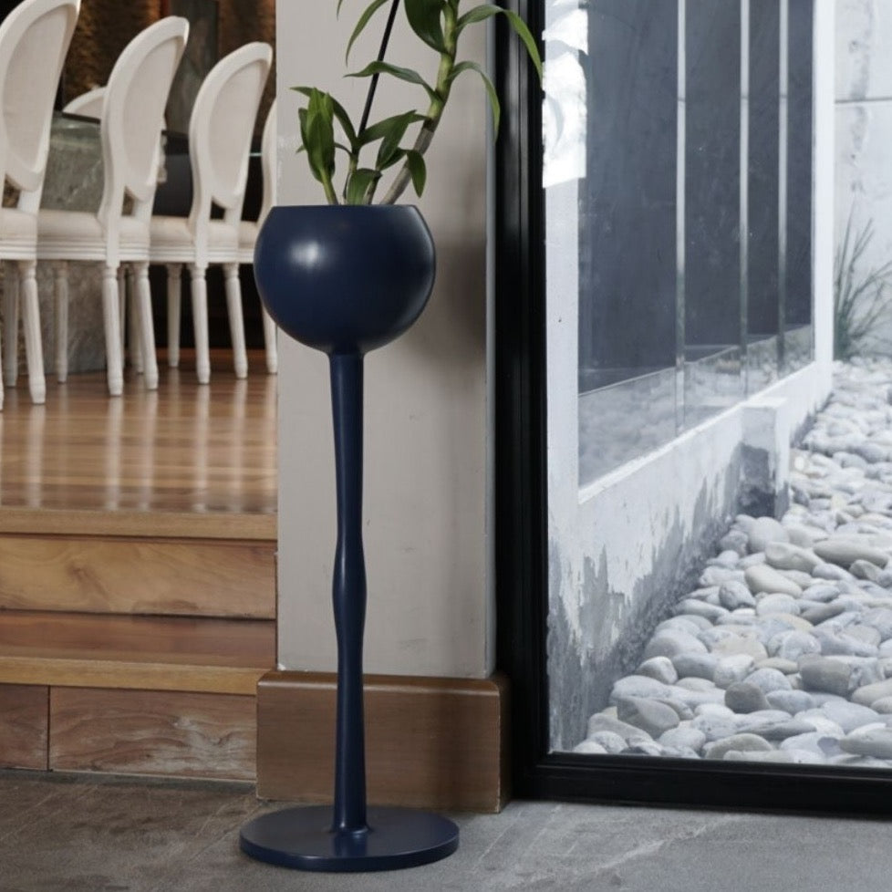 Nuestra maceta Martini esfera chica un recordatorio del estilo "Era Espacial" caracterizado por sus volúmenes esféricos, dotando tu hogar de un toque futurista.